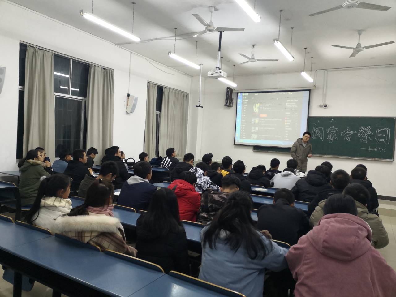 (威廉官方网站 通讯员 赵延凯)警钟长鸣,勿忘国耻。12月16日晚6点30分,机制1914班在团支书杨志豪的组织下于北区八栋C区107教室举办了“国家公祭日”主题班会,本次班会旨在让同学们深刻了解现在和平的来之不易以及加强同学们的爱国主义教育。 会议伊始,杨志豪强调:“本次会议十分严肃,是为了纪念我们的先辈们而开展的,在会议进行中,还请各位同学不要玩手机和窃窃私语;本次会议分为两个步骤,第一项为向先辈们默哀,第二项为观看爱国主义视频,现在会议开始!”第一项步骤开始,同学们全体起立、低头向前辈们默哀;一分钟过后,班会进入第二项,大屏幕上播放了战争纪录片《南京!南京!》,随着影片结束,杨志豪向大家讲述了南京大屠杀事件中发生的事情,发生的事情比电影中所讲述的残暴得多,并希望同学们勿忘国耻,发奋图强。 本次班会中,同学们积极配合班委们的工作,班会举办成功,相信通过这次班会,同学们可以珍惜现在的和平,并争做未来国家栋梁。记住,哪有什么岁月静好,只是有人在替我们负重前行!
