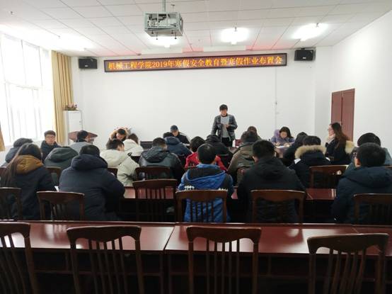 会议对寒假期间的员工安全教育问题、寒假社会实践、寒假作业等方面进行了布置和强调。会议以人生安全、财产安全、交通安全和寒假务工安全为主题,结合校园发生的典型案例,告诫同学们要注意假期安全,并告知员工们到家后第一时间通过电话、QQ等渠道及时向班主任、辅导员报平安。