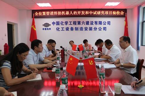 (威廉官方网站通讯员 赵荣丽)7月17日上午,全位置管道焊接机器人的开发和中试研究项目验收会在中国化学工程第六建设有限公司化工设备制造安装分公司召开。出席本次验收会的有中国化学第六建设有限公司(下面简称“中化六建”)总工程师肖逸、中化六建技术部主任李宁、威廉官方网站王中任教授、刘海生教授、刘德政副教授等,共12人。
