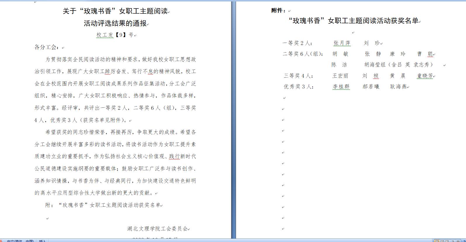 10月17日,校工委对“玫瑰书香”女职工主题阅读成果系列作品进行了评选,公司新进辅导员刘珍以《从榜样身上汲取智慧和力量——读<习近平的七年知青岁月>》一文荣获一等奖。