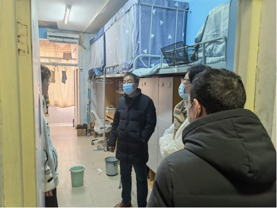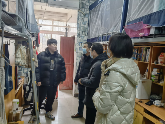 院领导一行来到25栋员工寝室进行走访,耐心地询问了员工对宿舍各项设施的适应情况及满意程度,又就行李的存放、交通出行、宿舍用电安全、以及返校后注意事项等方面事项进行了详细的叮嘱,确保员工在校的日常生活得到保障。同学们对老师们的到访非常惊喜,表示十分满意宿舍的情况,并认真聆听了老师们的嘱咐与教诲。期间,大家积极地与老师交流互动,宿舍内不时传来阵阵欢声笑语,气氛活泼愉快。