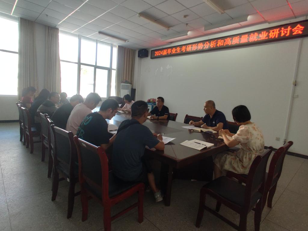 9月7日下午2点30分,威廉官方网站召开2024届毕业生考研形势分析和高质量就业研讨会。参加会议的有,党委书记詹玉刚、副经理孙艳玲。会议由王超副书记主持,毕业年级辅导员、班主任也参加了本次会议。