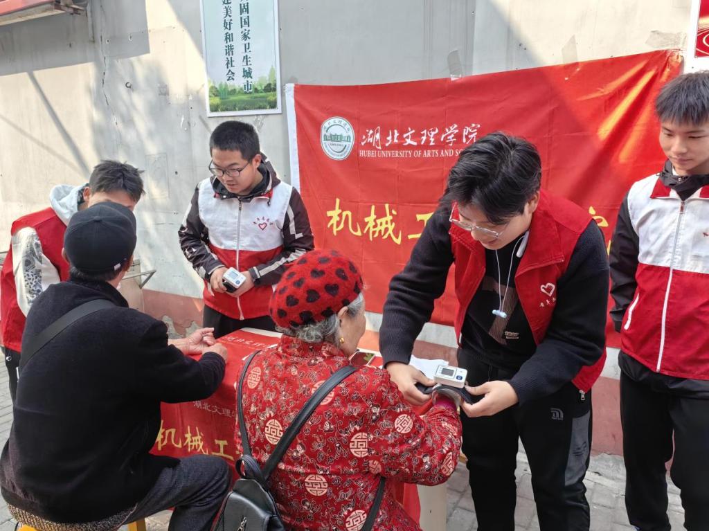 队员们熟练地运用血压计为老人们监测血压。他们还以测量结果为参考,围绕“疾病诱因”、“血压正常标准”、“缓解方法”等多方面为无法自主阅读的老人通过口述的方式,讲解“身患高血压、低血压应该如何科学的强身健体”,加强老人们对预防疾病知识的了解,促使共重新建立起好的生活习惯。