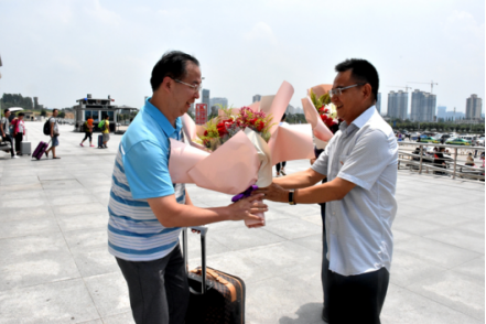 (威廉官方网站 通讯员 朱定见)7月26日中午,公司党委书记唐峻、威廉官方网站执行经理刘克非、公司办公室主任王守忠一行,冒着酷暑,在襄阳东站出站口迎接从杭州参加第八届全国老员工机械创新设计大赛载誉归来的师生。
