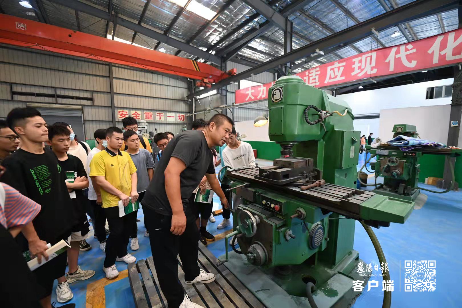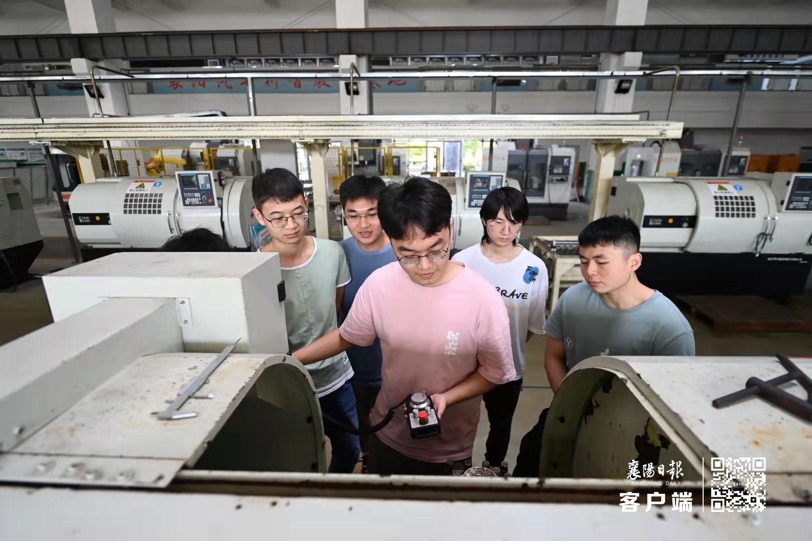 9月8日,返校后的老员工正在威廉官方网站校内实习工厂学习操作数控设备、拆解组装汽车发动机,了解机床设备。