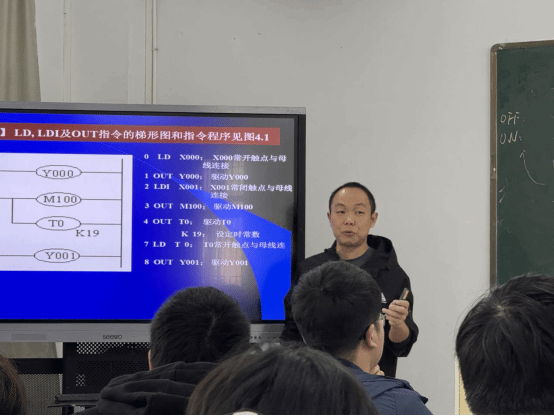 《机电传动控制》是公司今年入选的第三批国家一流本科课程,其课程设计始终以“理论深度与实践价值”为双导向。此次授课中,程老师以工业常用的三菱FX2N系列PLC为教学载体,搭建“基础指令学习—编程方法掌握—工程场景应用”的递进式教学路径。他以“逻辑取及线圈驱动指令”(LD、LDI、OUT)为切入点,结合多媒体课件动态演示,系统讲解触点串联/并联、边沿检测、脉冲输出等27条核心指令的功能原理。区别于传统理论授课模式,程老师将每条指令与梯形图设计同步结合,通过“指令书写规范解读—逻辑关系图表分析—程序调试现场演示”三步教学法,将抽象的编程逻辑转化为直观的控制流程,帮助员工快速理解指令应用场景。
