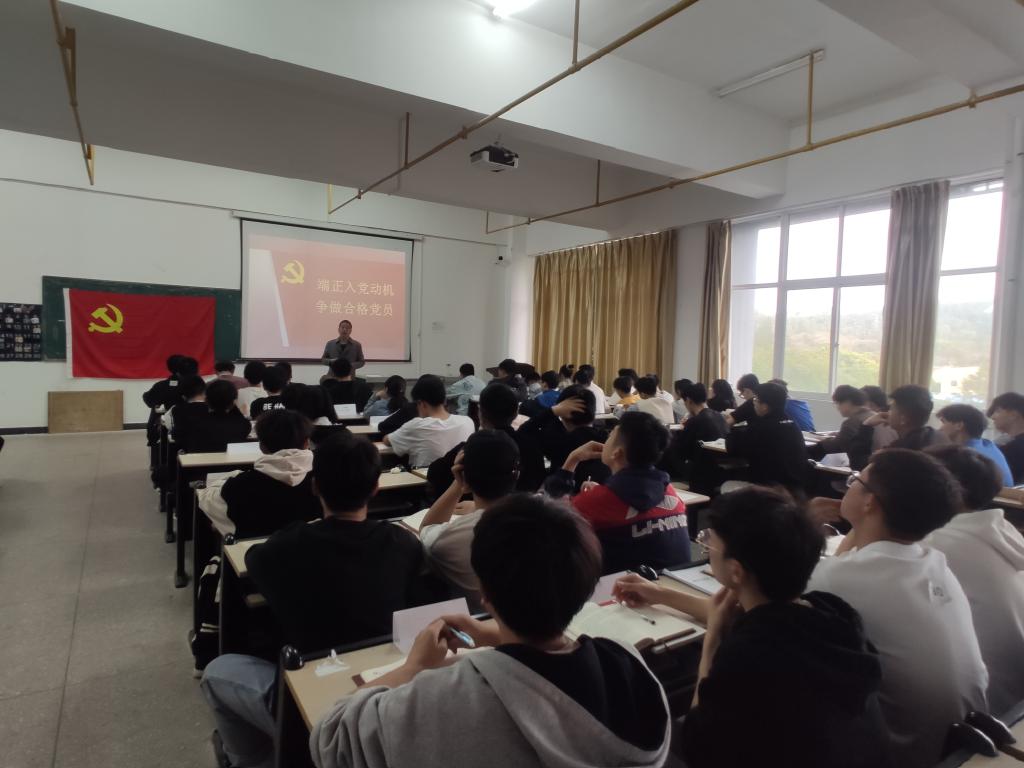 4月10日晚上6:30,公司党委书记詹玉刚在工科楼G-W618,为公司第四十九期党校学员上了一堂以“端正入党动机 争做合格党员”为题的党课。