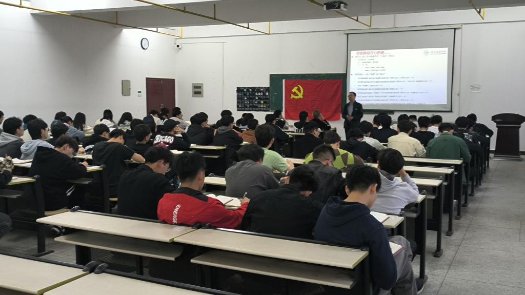 首先,梁斌远老师从该如何学习党的百年历史这一问题开始讲起。表示,学习党的百年历史,一方面要以习近平总书记关于党的历史的重要论述为指导,要树立正确的历史观。另一方面,要准确把握党的历史的主题和主线,主流和本质。接着,梁斌远老师讲述了关于党历史的主流和本质,可以从党的不断奋斗史,理论探索史和党的自身建设史来把握。重点解读了党的自身建设史,我们要记住的两个工程以及三个方面的重大意义。随后,梁斌远老师结合历史事实,向同学们阐述了党的百年历史的宝贵经验和重要启示——始终坚持中国共产党的领导,是党团结带领全国各族人民创造百年辉煌的根本所在。最后,梁斌远老师结合自身经历以及多年来的教学经验,向同学们传授了“自信、自律”四字经验,即相信集体,相信自己,坚持做正确的事,并希望同学们加入党组织后,认真学习、努力实践,彰显一名共产党人该有的精神面貌。